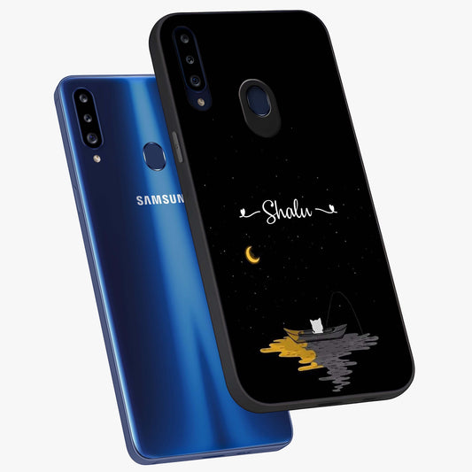 Petal Moon Light With Custom Name Glass Case For Samsung Galaxy A20S