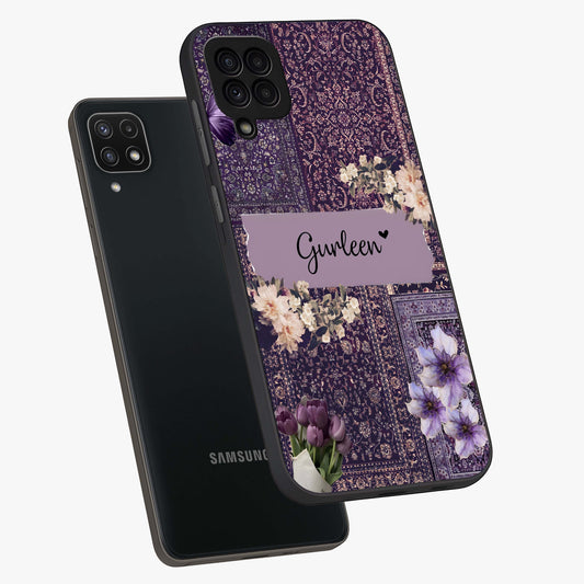 Antique Floral Whisper Custom Name Glass Case For Samsung Galaxy A22 4G