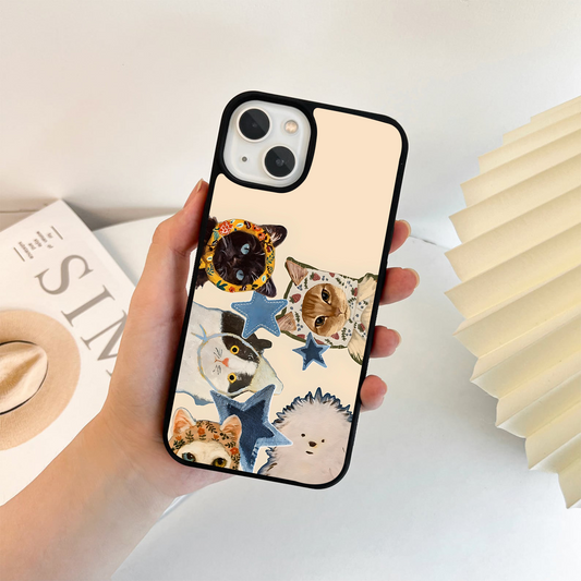 Textured Cat Portraits Glass Case