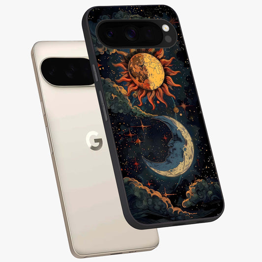 Sun And Moon Magic Design Glass Case For Pixel 10 Pro XL