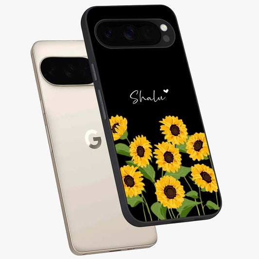 Sunflower Chic Mood Custom Name Glass Case For Pixel 10 Pro XL