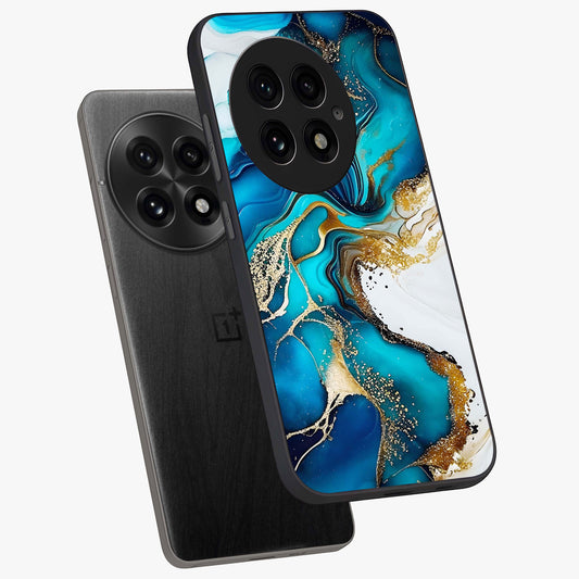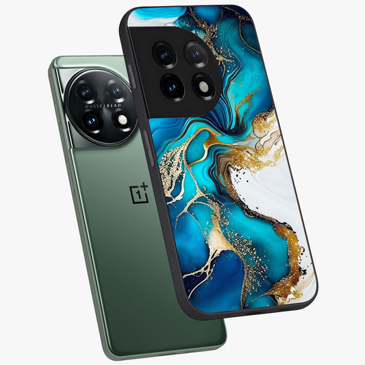 Blue and White Marble With Golden Viens Art Glass Case for OnePlus 11 |1+11