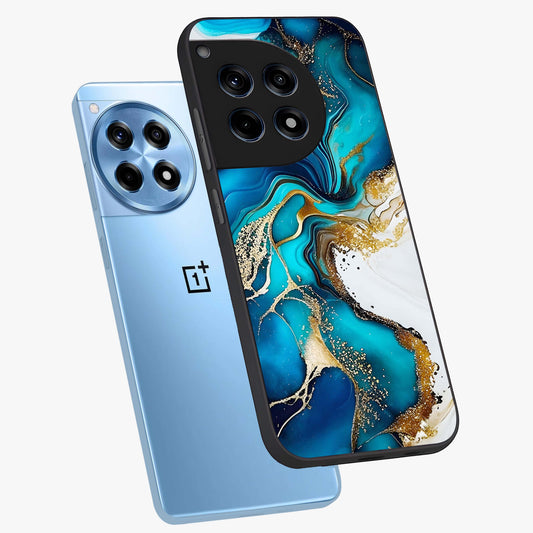 Blue and White Marble With Golden Viens Art Glass Case for OnePlus 12R |1+12R