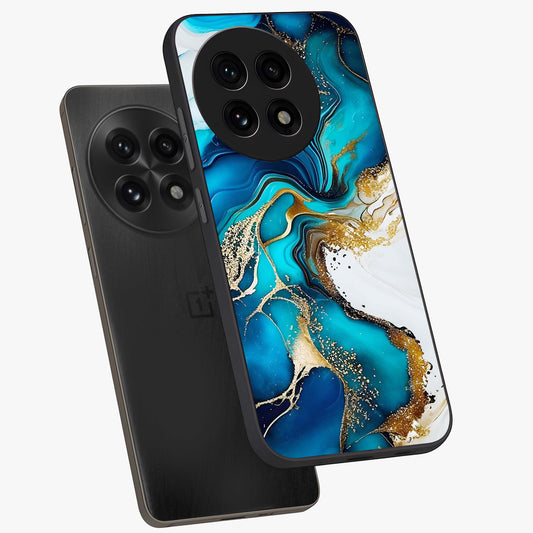 Blue and White Marble With Golden Viens Art Glass Case for OnePlus 13 |1+13