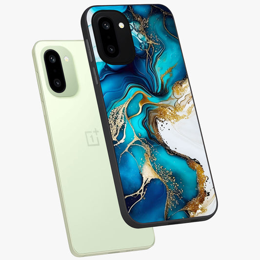 Blue and White Marble With Golden Viens Art Glass Case for OnePlus 13R |1+13R