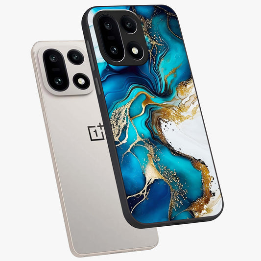 Blue and White Marble With Golden Viens Art Glass Case for OnePlus 15 |1+15