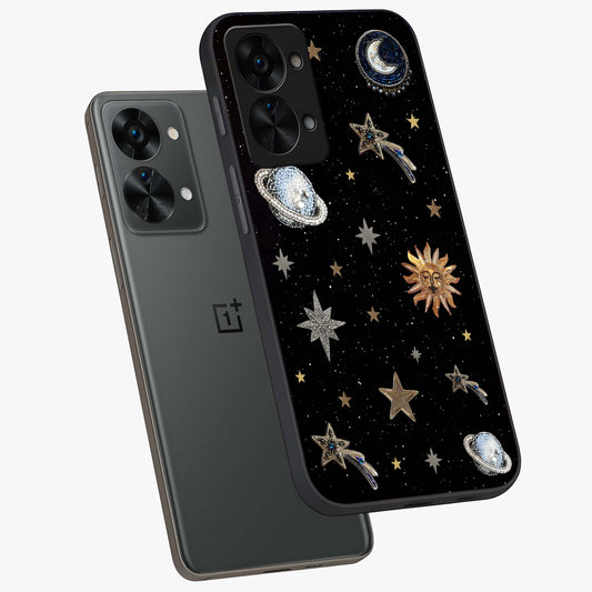 Stars and Planets Brooches Glass Case for OnePlus Nord 2T |1+Nord 2T