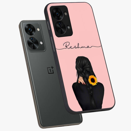 Sunflower Braid Beauty With Custom Name Glass Case for OnePlus Nord 2T |1+Nord 2T