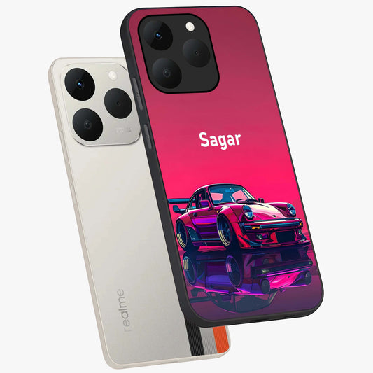 Neon Pink Porsche Custom Name Glass Case For Realme Narzo 90 5G