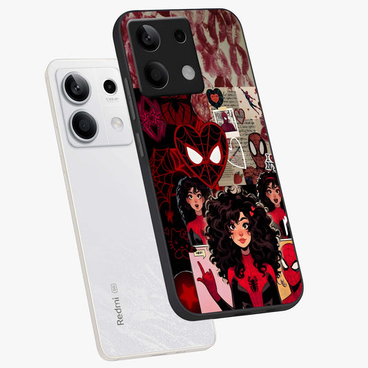 Spider Love Story Glass Case For Redmi Note 13 5G