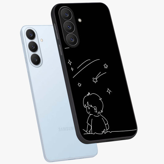 Line Art Boy With Shooting Stars Glass Case For Samsung Galaxy S26 Plus