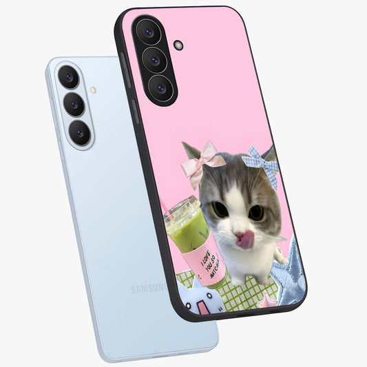 Love Matcha Cat Glass Case For Samsung Galaxy S26 Plus