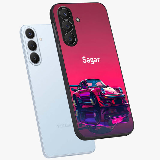 Neon Pink Porsche Custom Name Glass Case For Samsung Galaxy S26 Plus