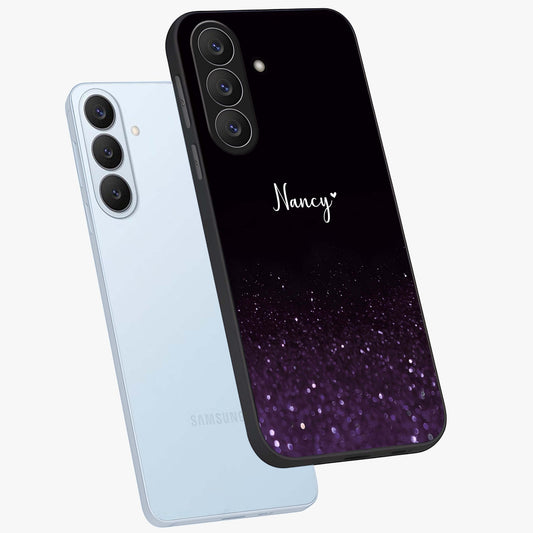 Glittery Purple Bokeh Custom Name Glass Case For Samsung Galaxy S26 Plus