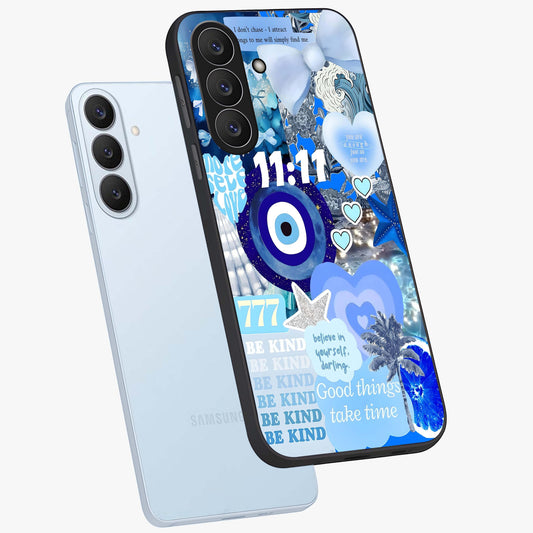 Aesthetic Blue Evil Eye Glass Case For Samsung Galaxy S26 Plus