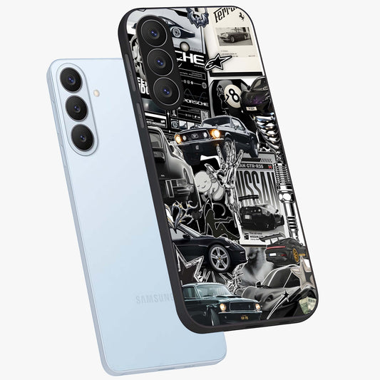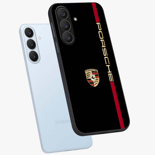 Black Minimal Porsche Glass Case For Samsung Galaxy S26 Plus