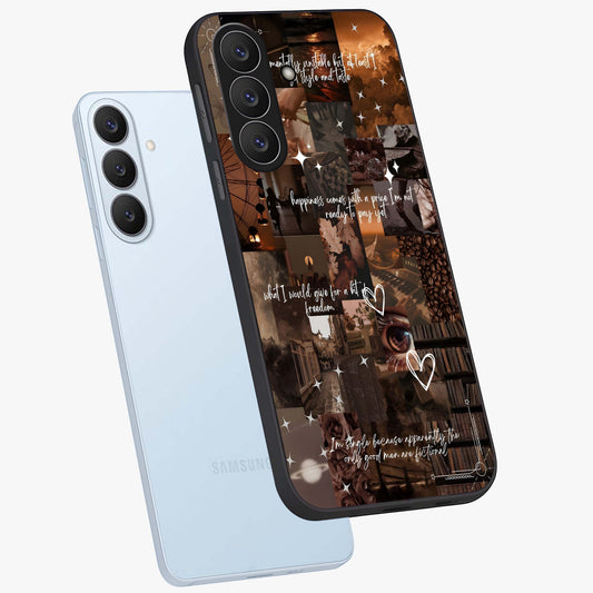Aesthetic Brown Vintage Collage Glass Case For Samsung Galaxy S26 Plus