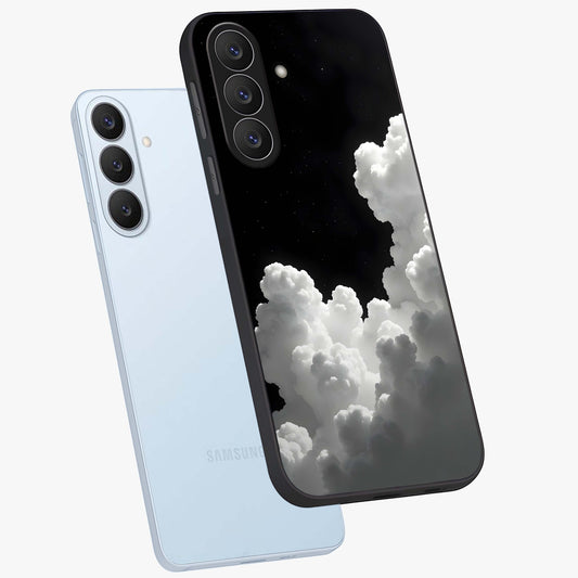Black Background With White Cloud Glass Case For Samsung Galaxy S26 Plus