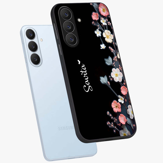 Black Elegance Floral Custom Name Glass Case For Samsung Galaxy S26 Plus