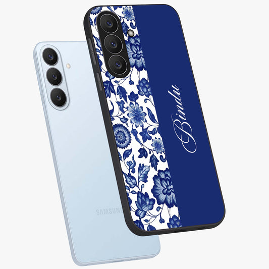 Blue Vintage Floral Pattern Glass Case For Samsung Galaxy S26 Plus