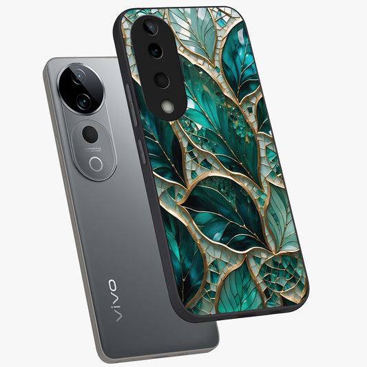 Emerald Leaf Glass Glass Case For Vivo V40