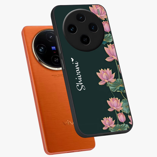 Lotus Bloom Serenity Custom Name Glass Case For Vivo X100 Pro