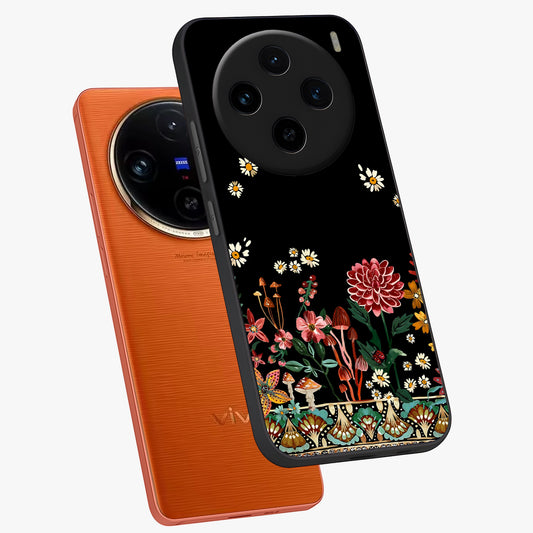 Noir Bloom Elegance Glass Case For Vivo X100 Pro