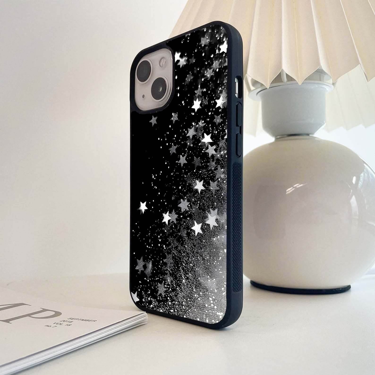 Black Glittering Stars Glass Case