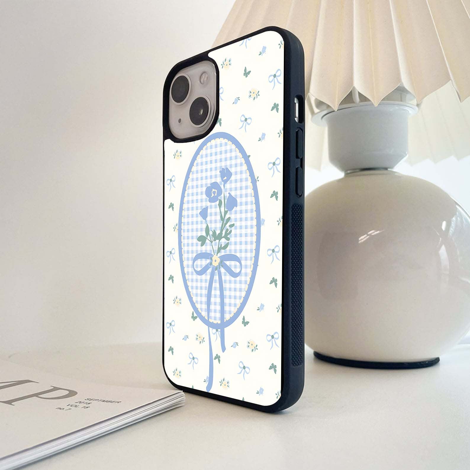 Cute Girl in Blue with Flowers Custom Name Clear Silicon Cover