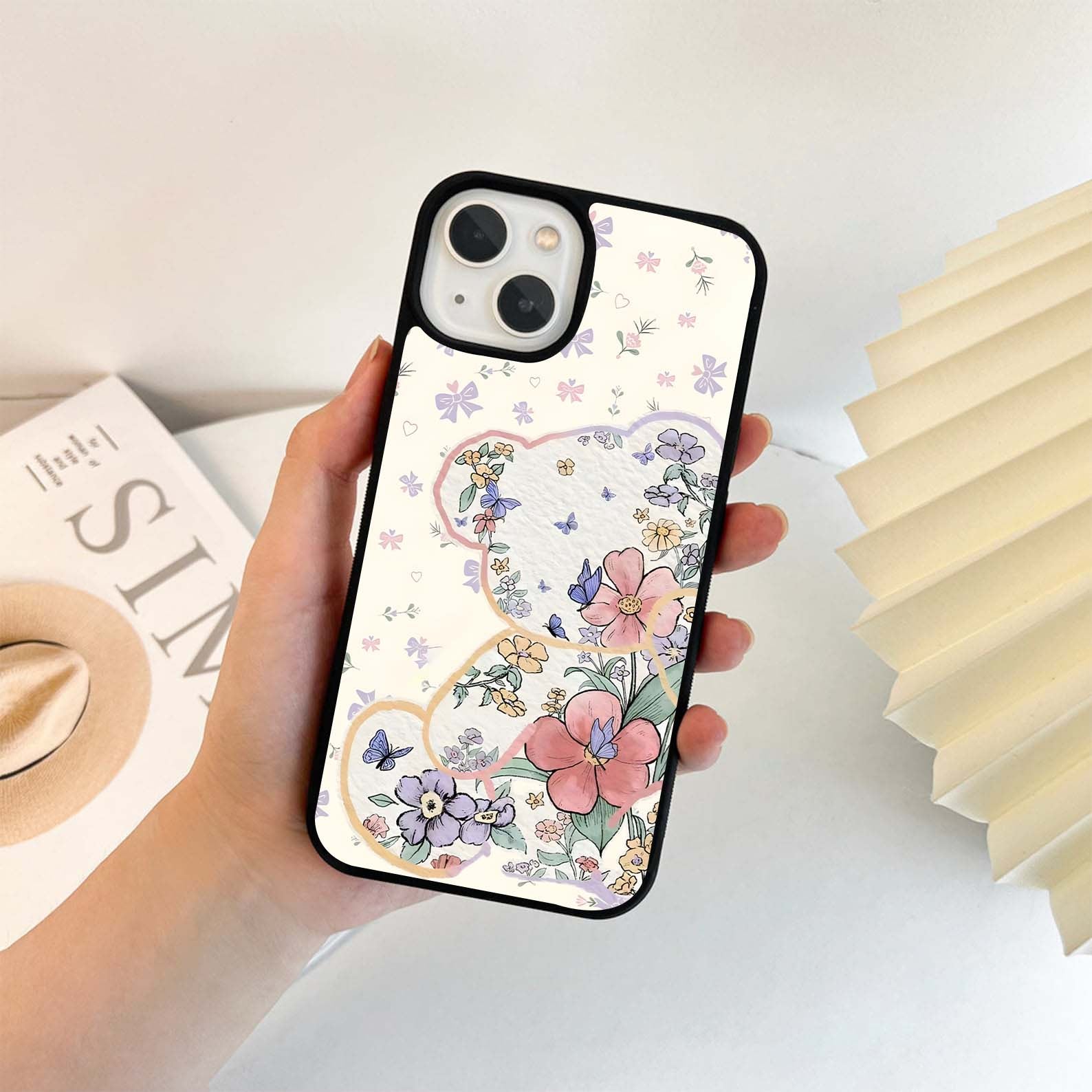 अनुकूलित धारक के साथ पुष्प डुओ स्लिम केस कवर