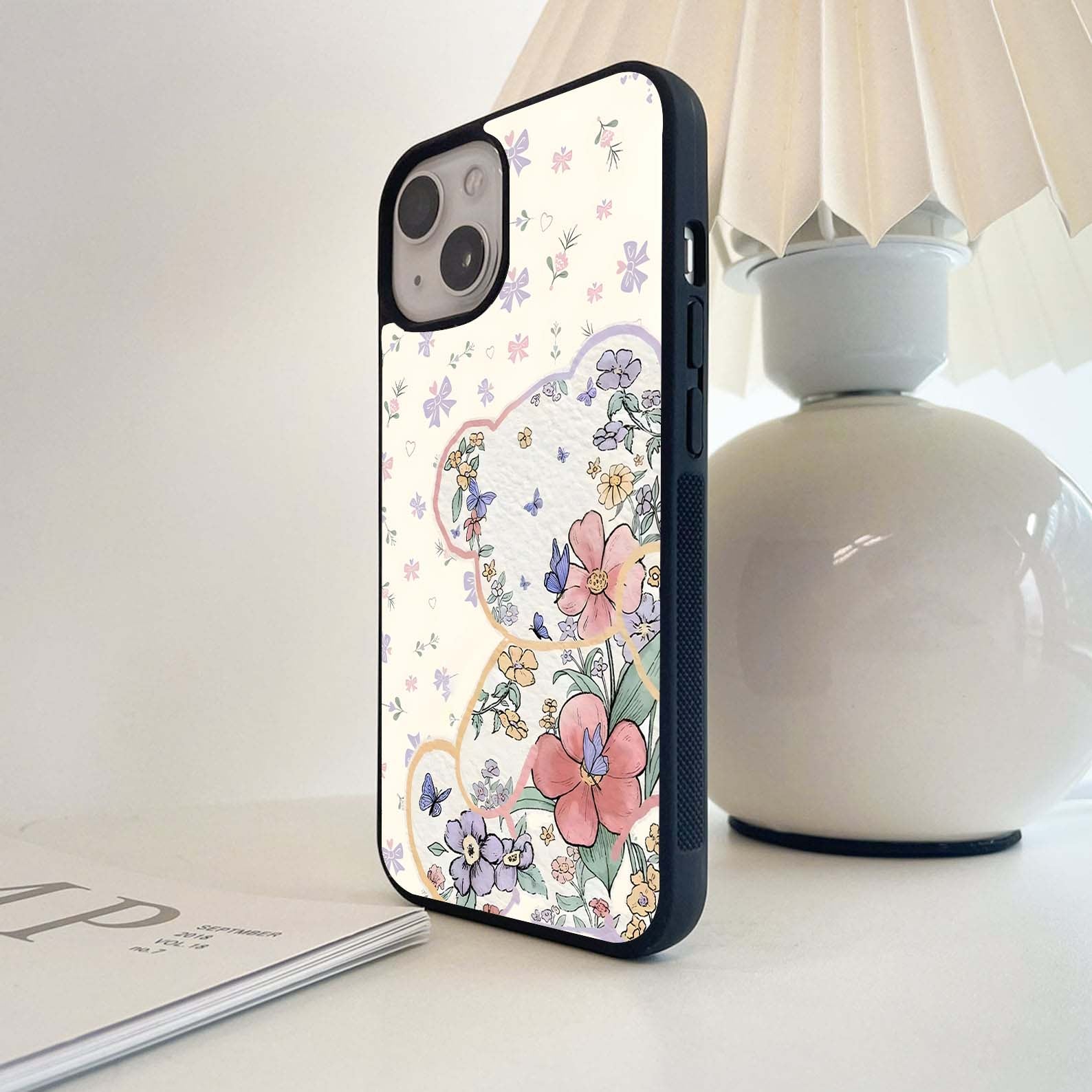 Aesthetic Love with Flower Glass Case