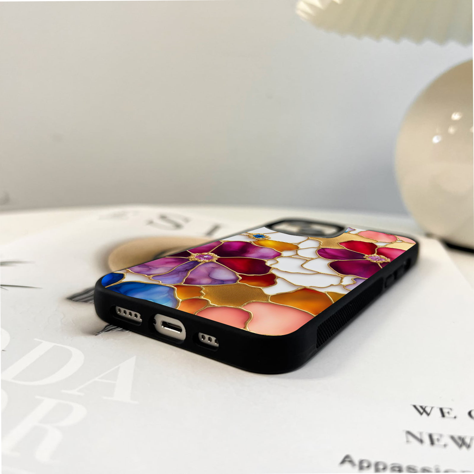Glass Cases are just made beautiful without actual glitter or marble, The sides are silicon and back with Glossy Glass Finish.