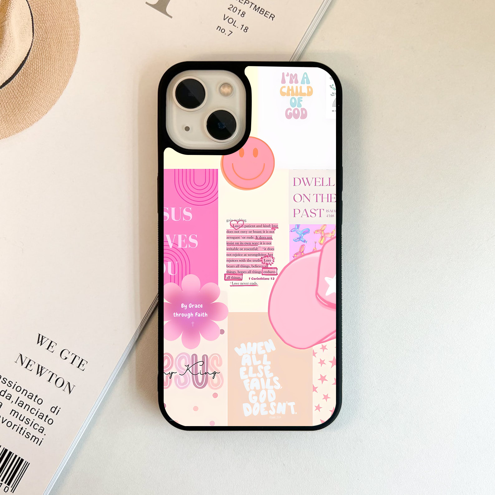 Cute Girl in Pink with Flower Custom Name Clear Silicon Soft Cover