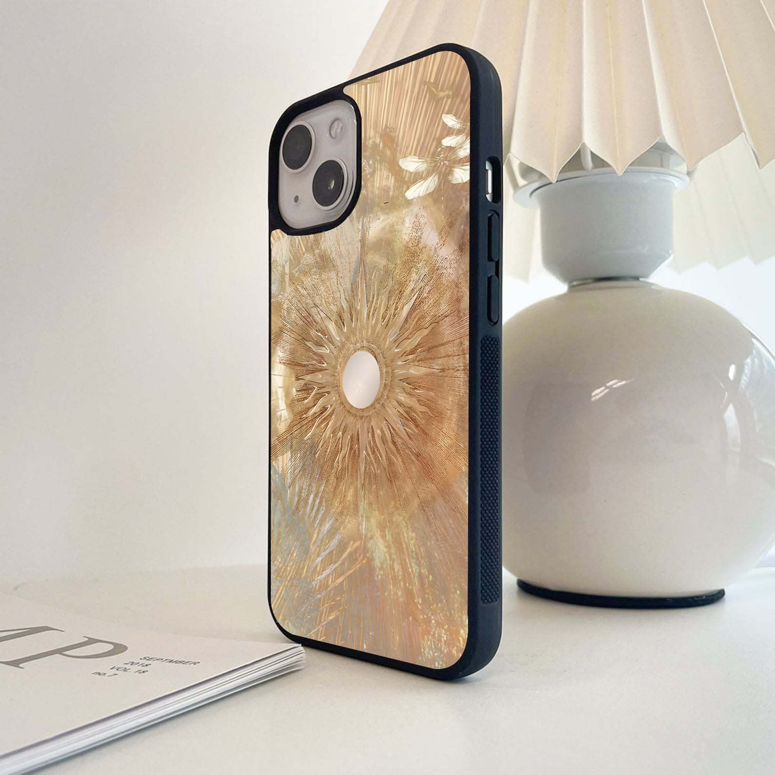 Abstract Embossed Blooming Bright Flower Glass Case