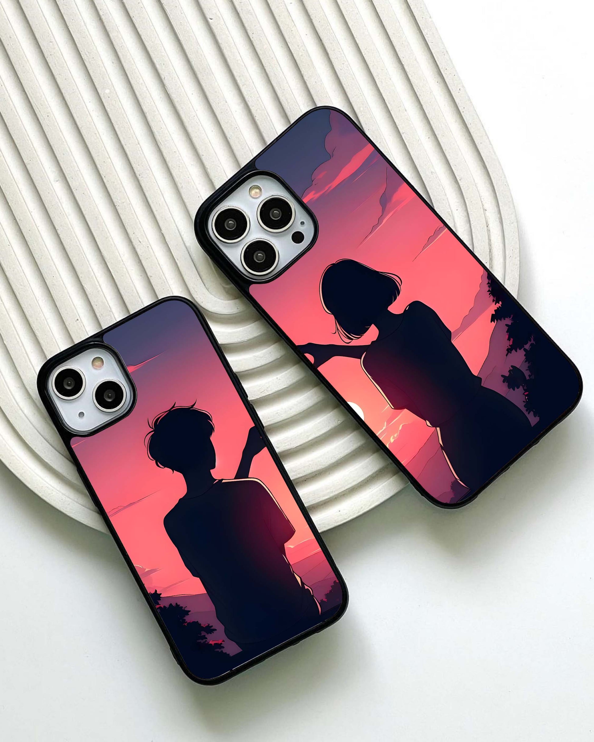 Sunset Couple Hand Glass Case
