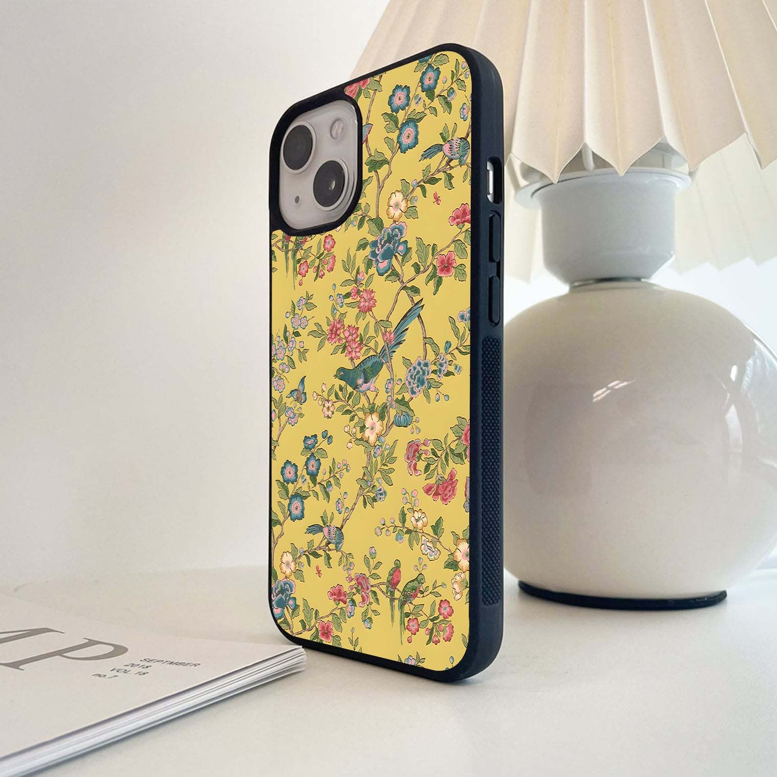Aesthetic Yellow Floral Glass Case