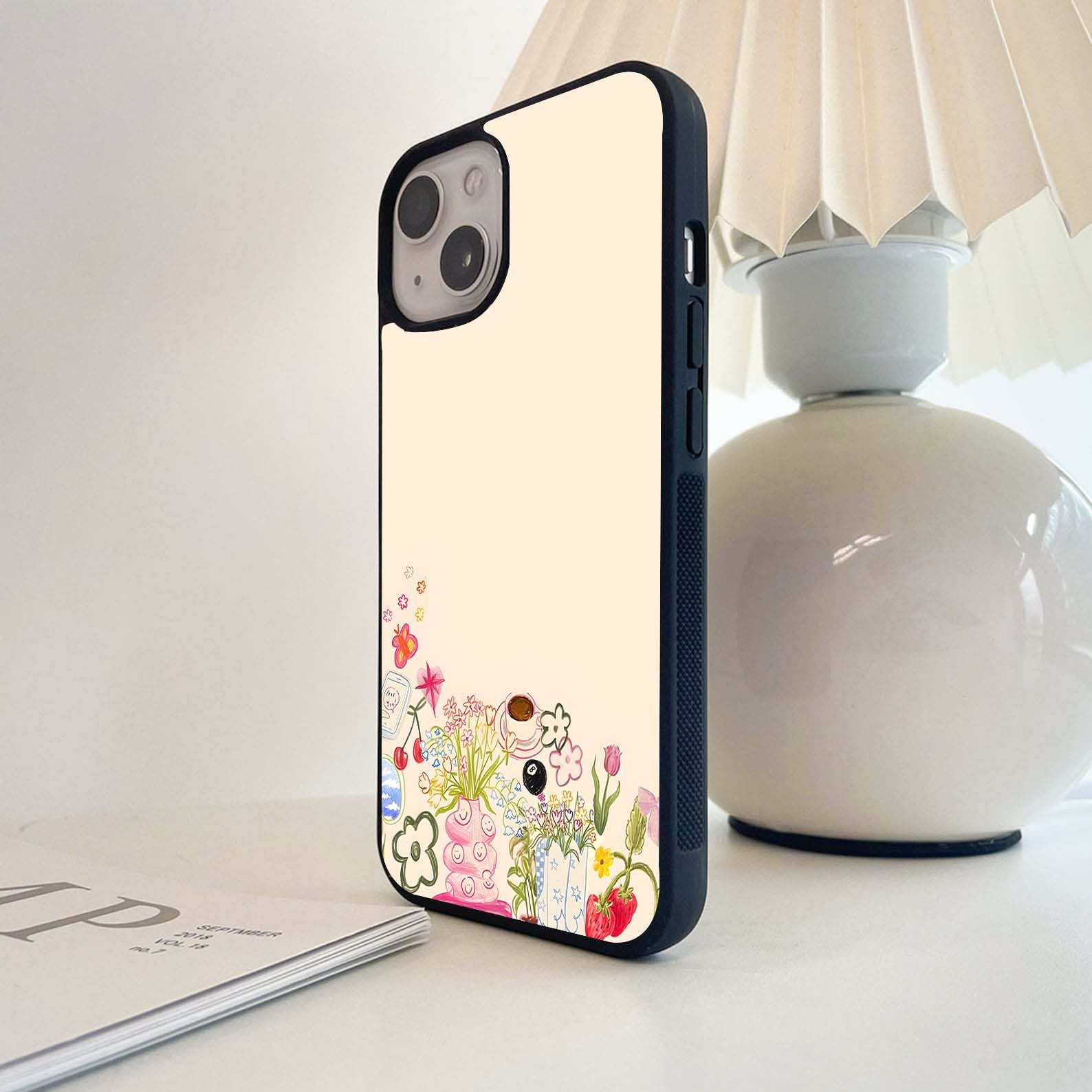 Cute Couple V2 Custom Name Glass Case ( 2 FREE Keychains )