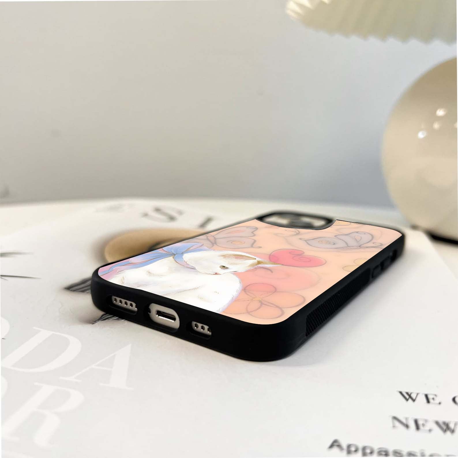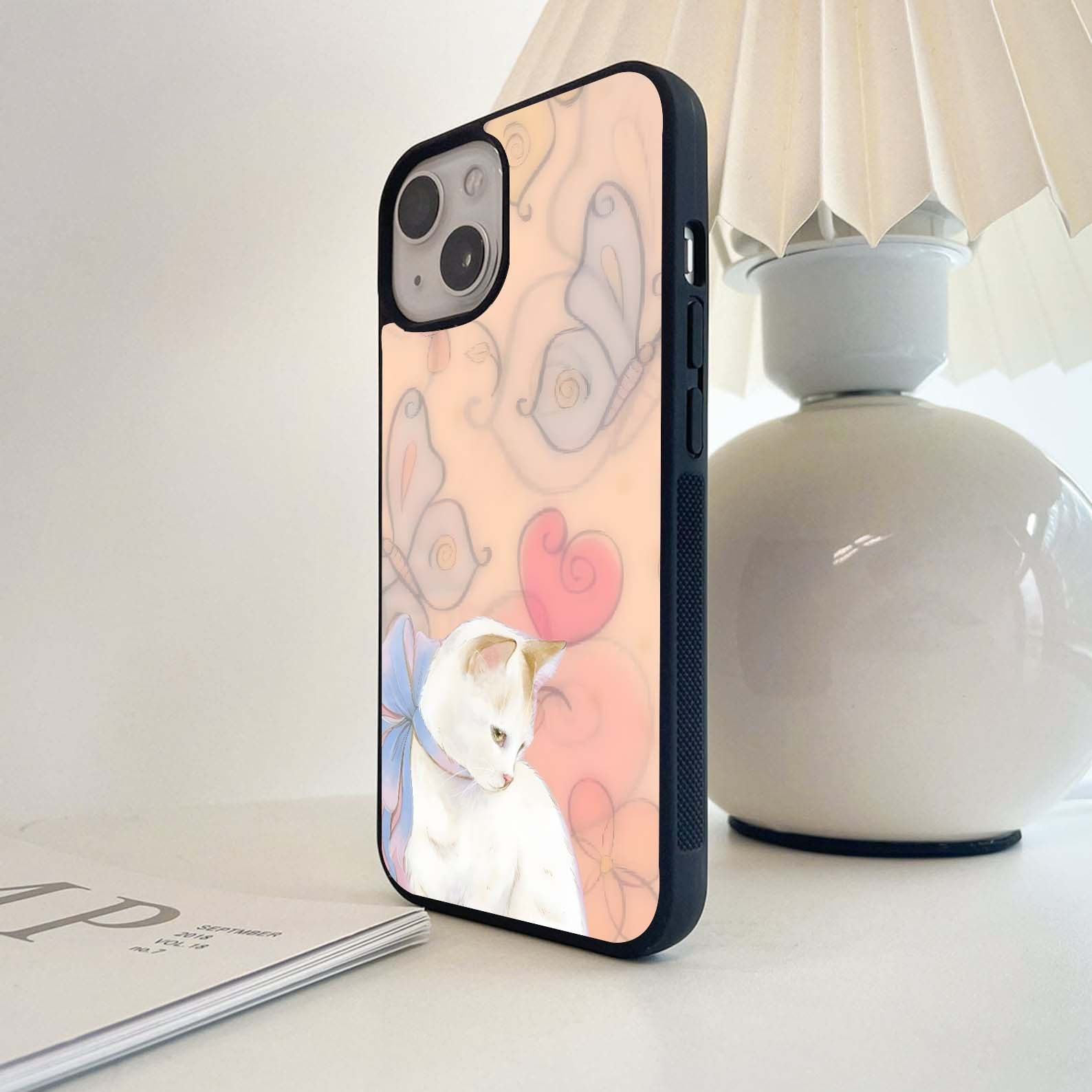 Cute Couple V2 Custom Name Glass Case ( 2 FREE Keychains )