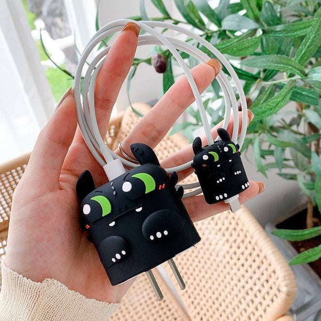 Black Toothless Cartoon Silicon Apple iPhone Charger Case | Lightning Charger/Cable Protector Cover for iPhone Charger