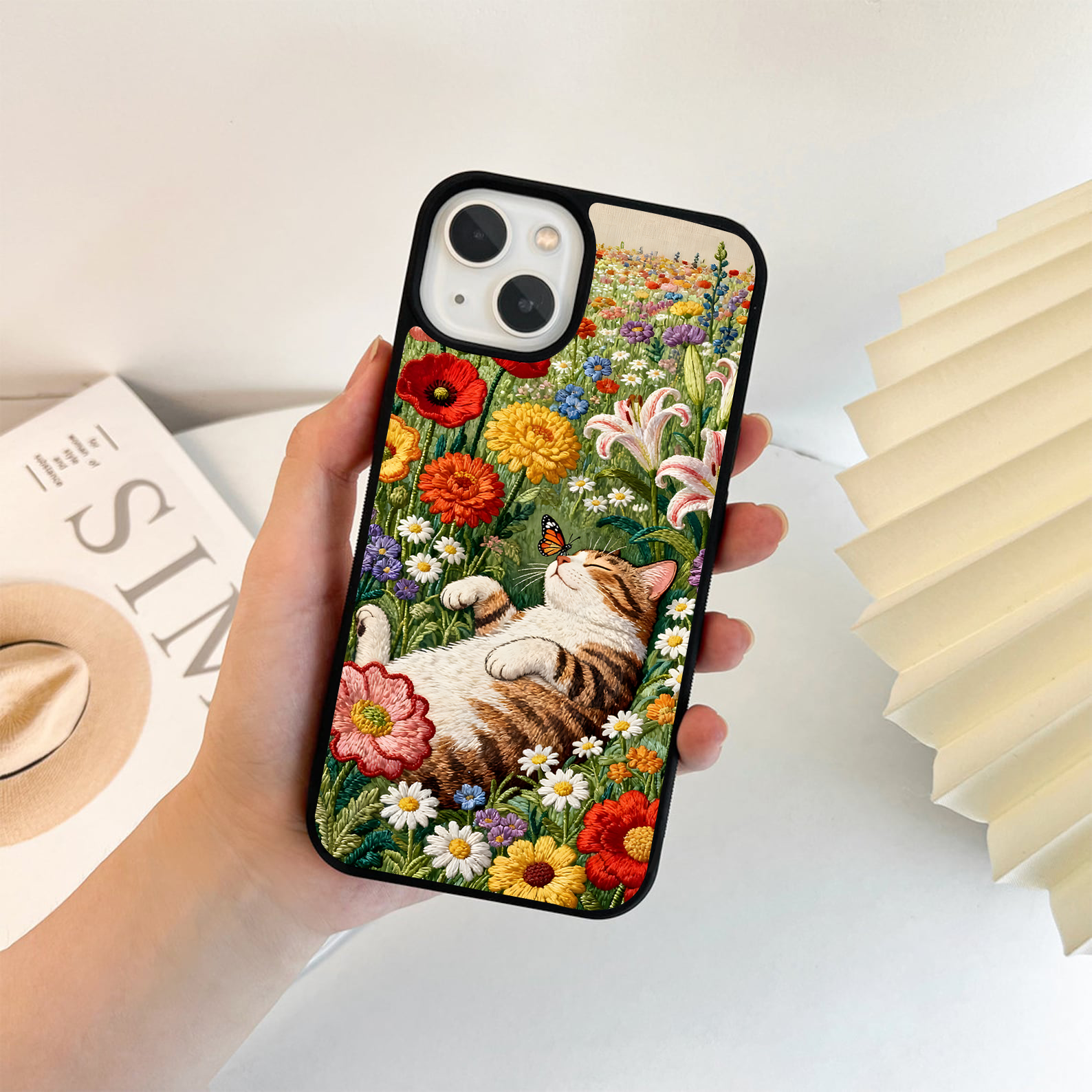 Bloomed Floral Pattern Slim Case Cover With Same Design Holder