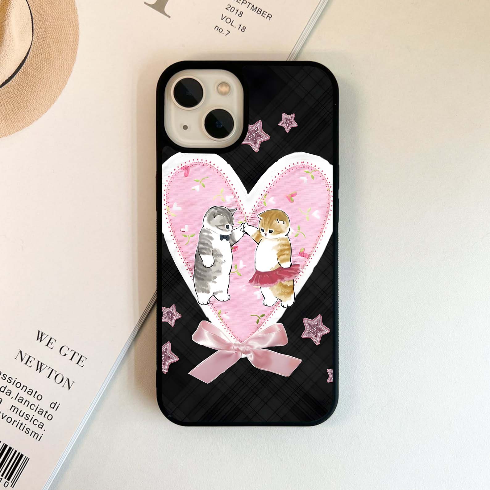 Cute Couple V2 Custom Name Glass Case ( 2 FREE Keychains )