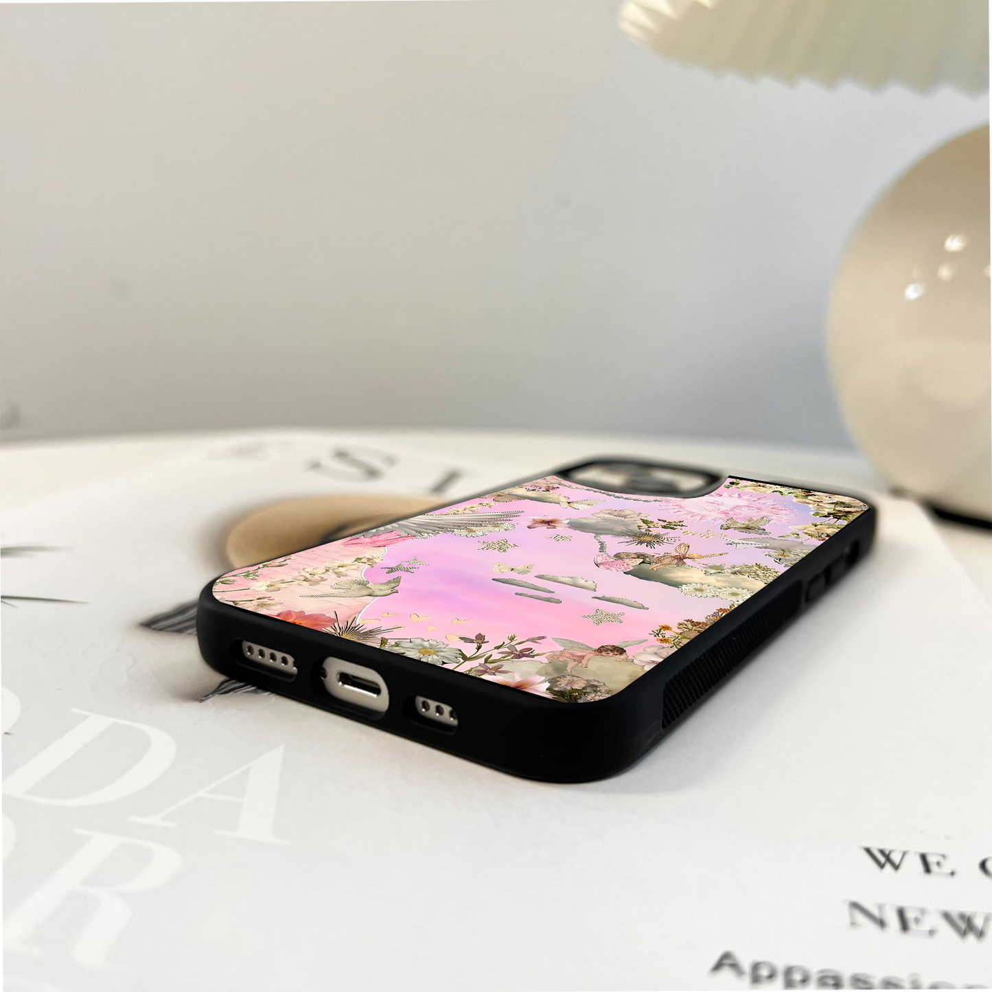 Cute Girl in Pink with Flower Custom Name Clear Silicon Soft Cover