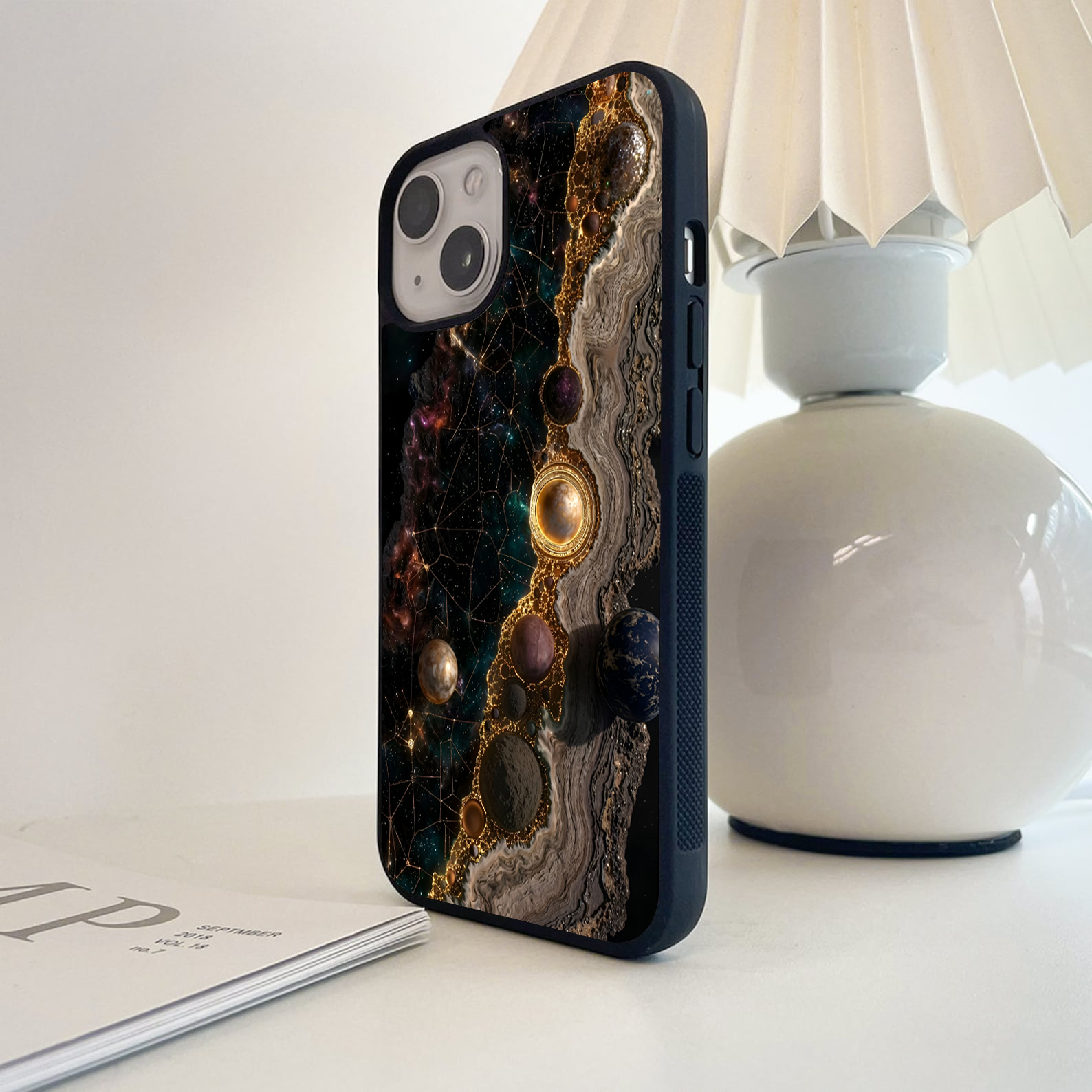 Glass Cases are just made beautiful without actual glitter or marble, The sides are silicon and back with Glossy Glass Finish.