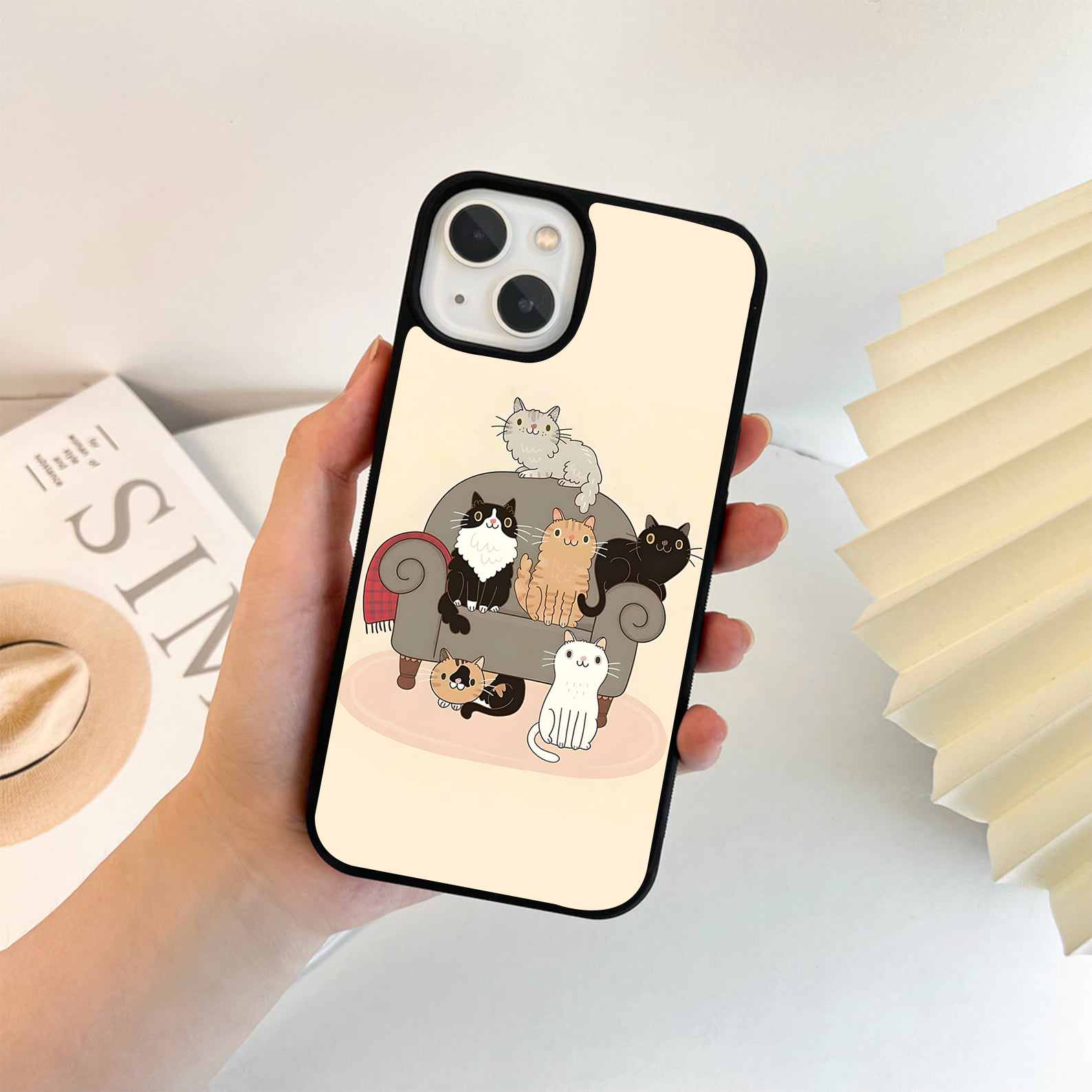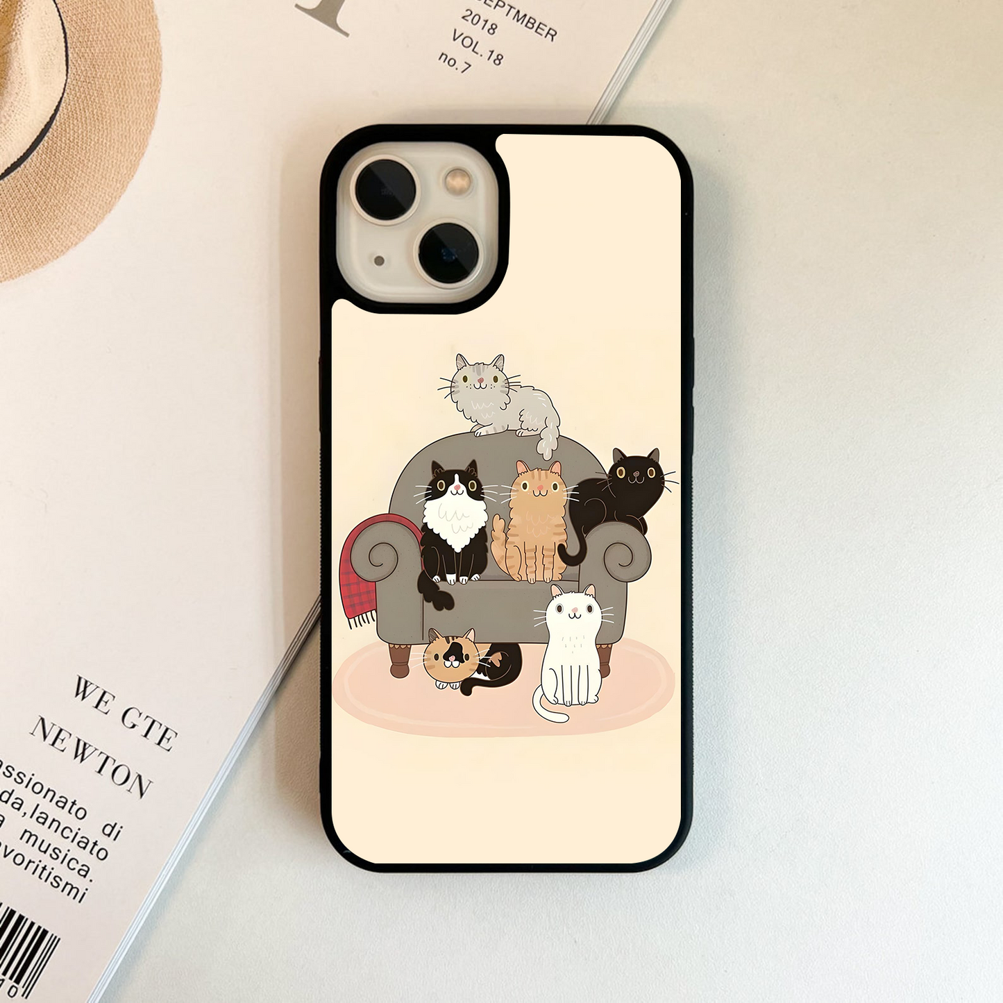 Couch Cat Family Glass Case