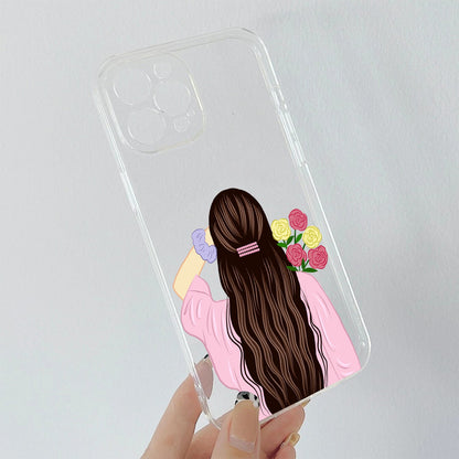 Girl With Flower Custom Name Clear Silicon Soft Cover