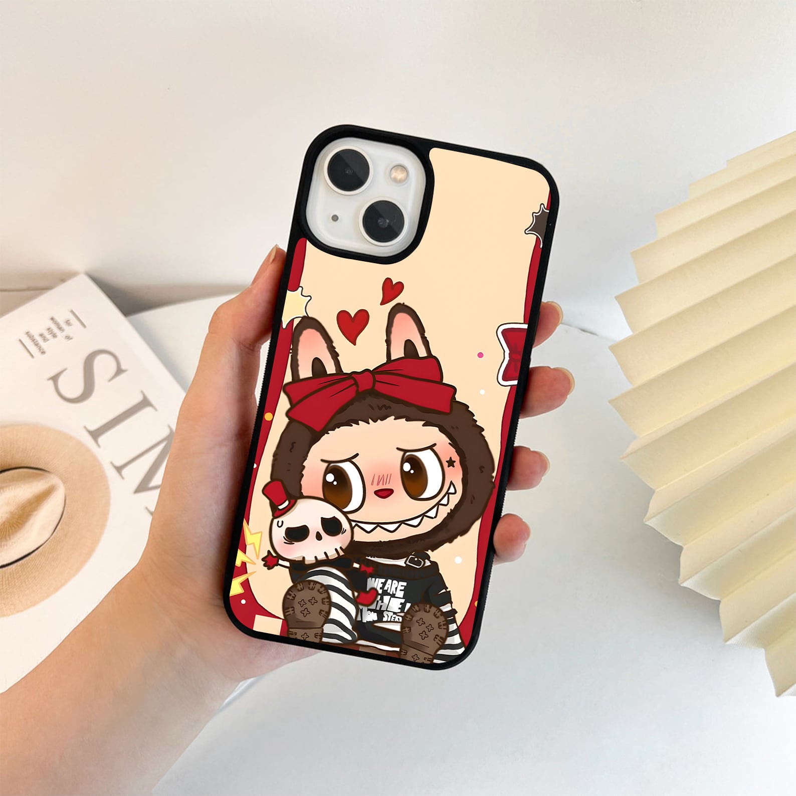 Cute Couple V2 Custom Name Glass Case ( 2 FREE Keychains )