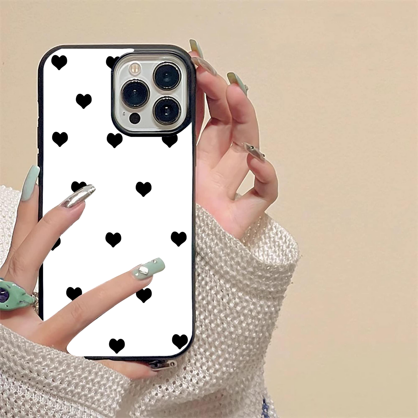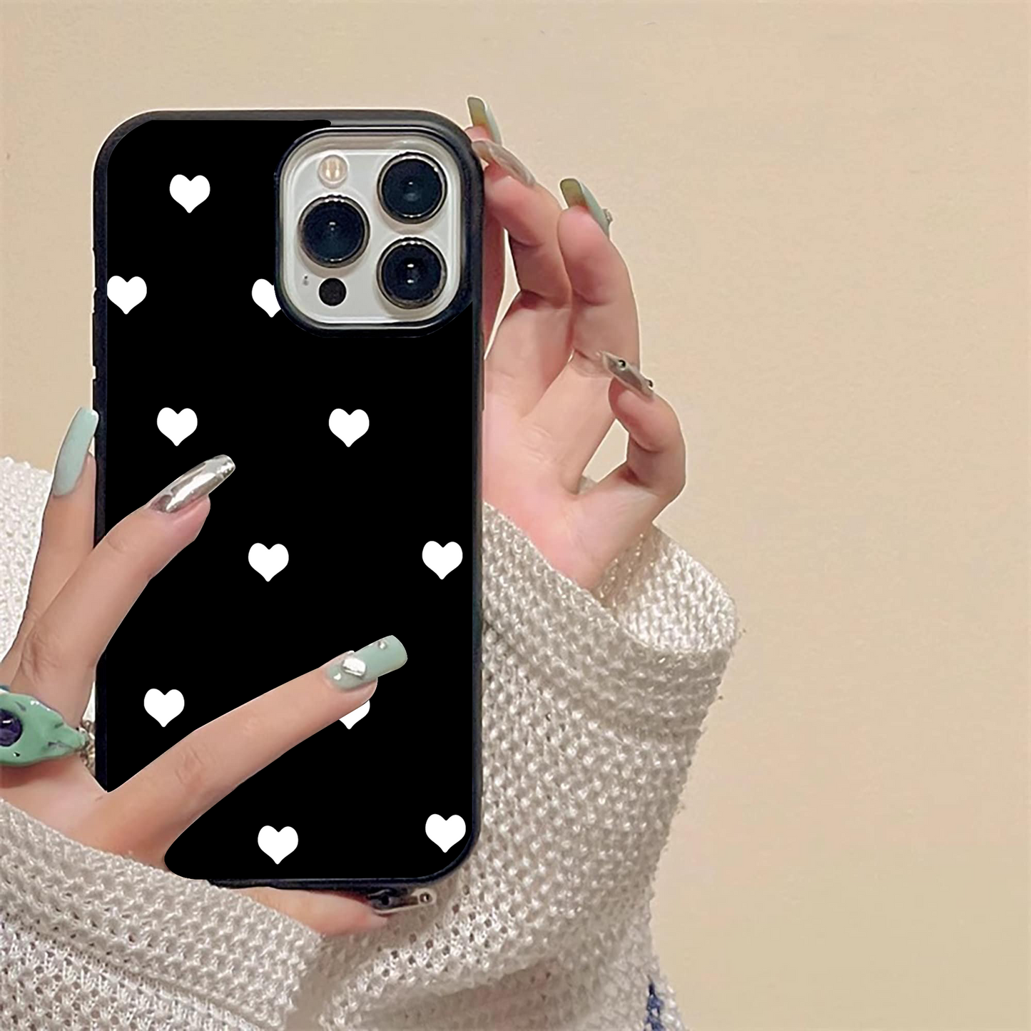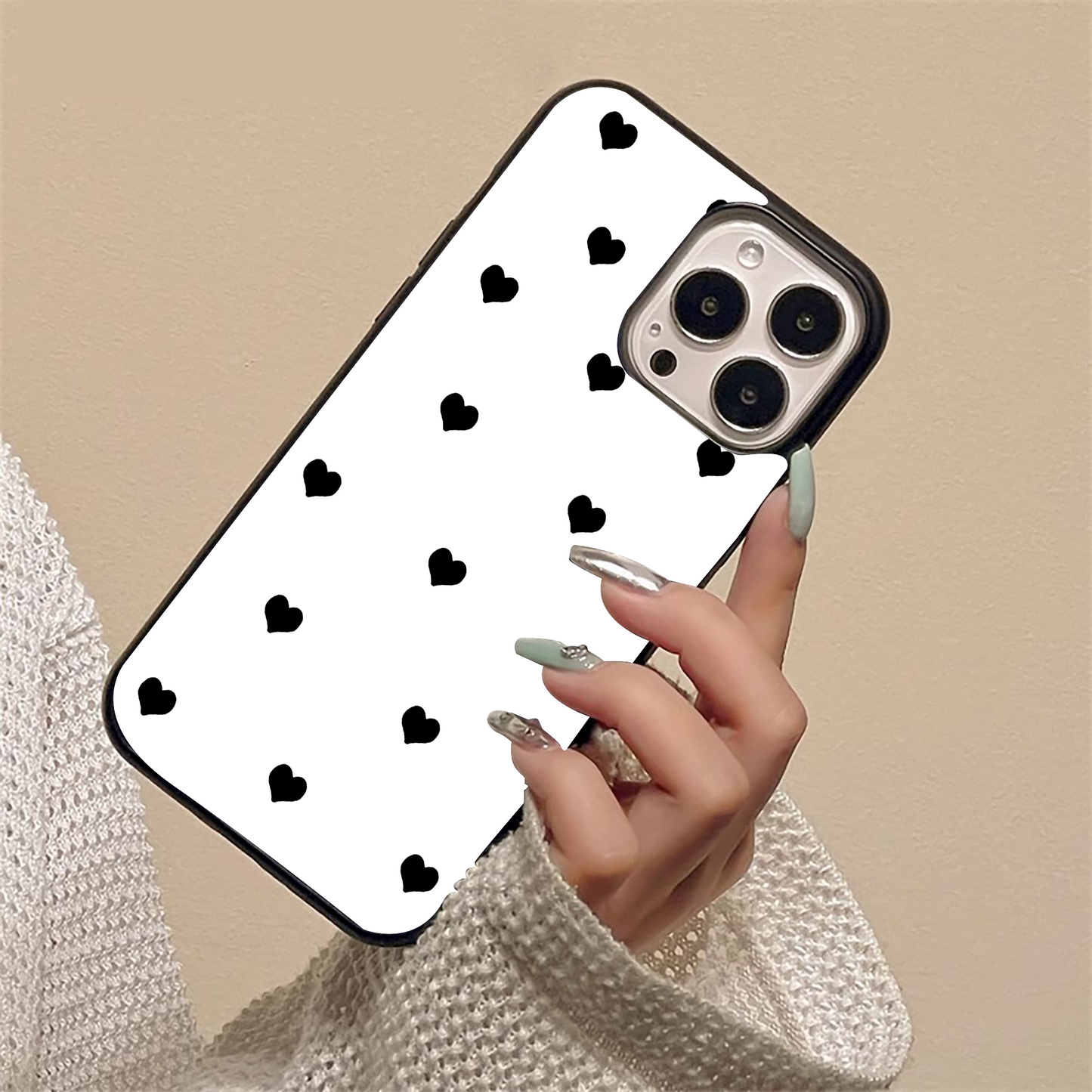 Cute & Simple White Hearts Glass case