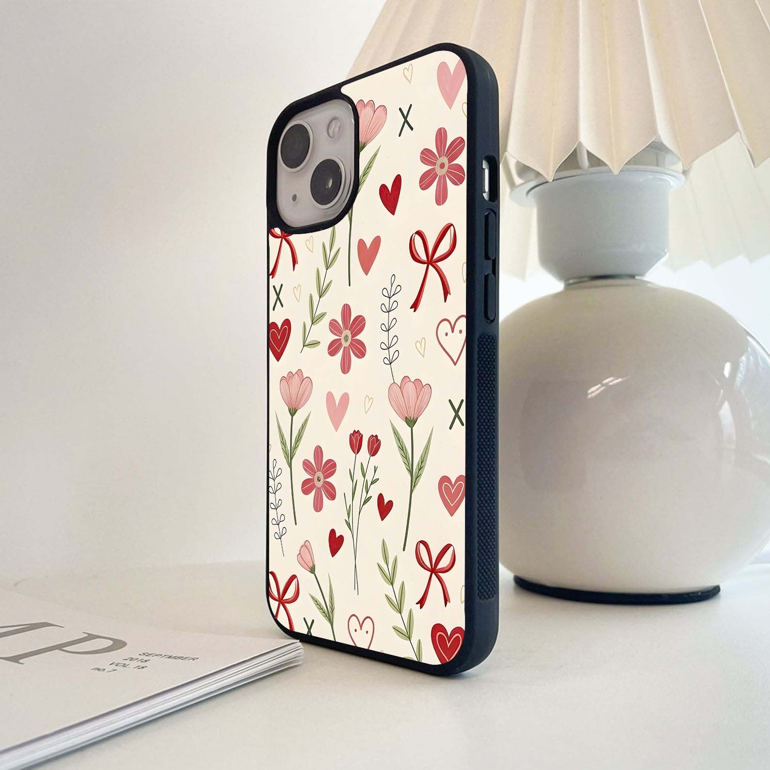 Cute Couple V2 Custom Name Glass Case ( 2 FREE Keychains )