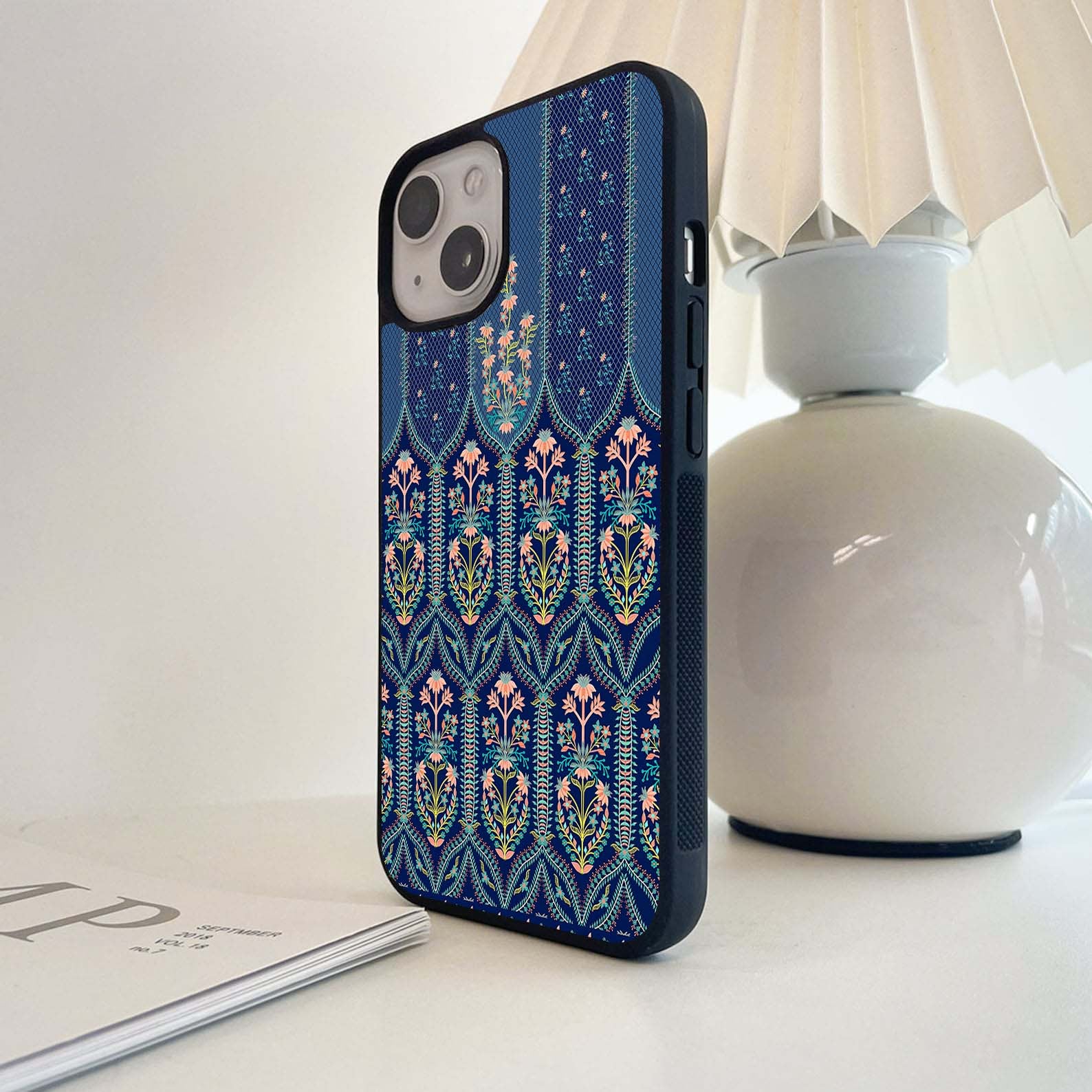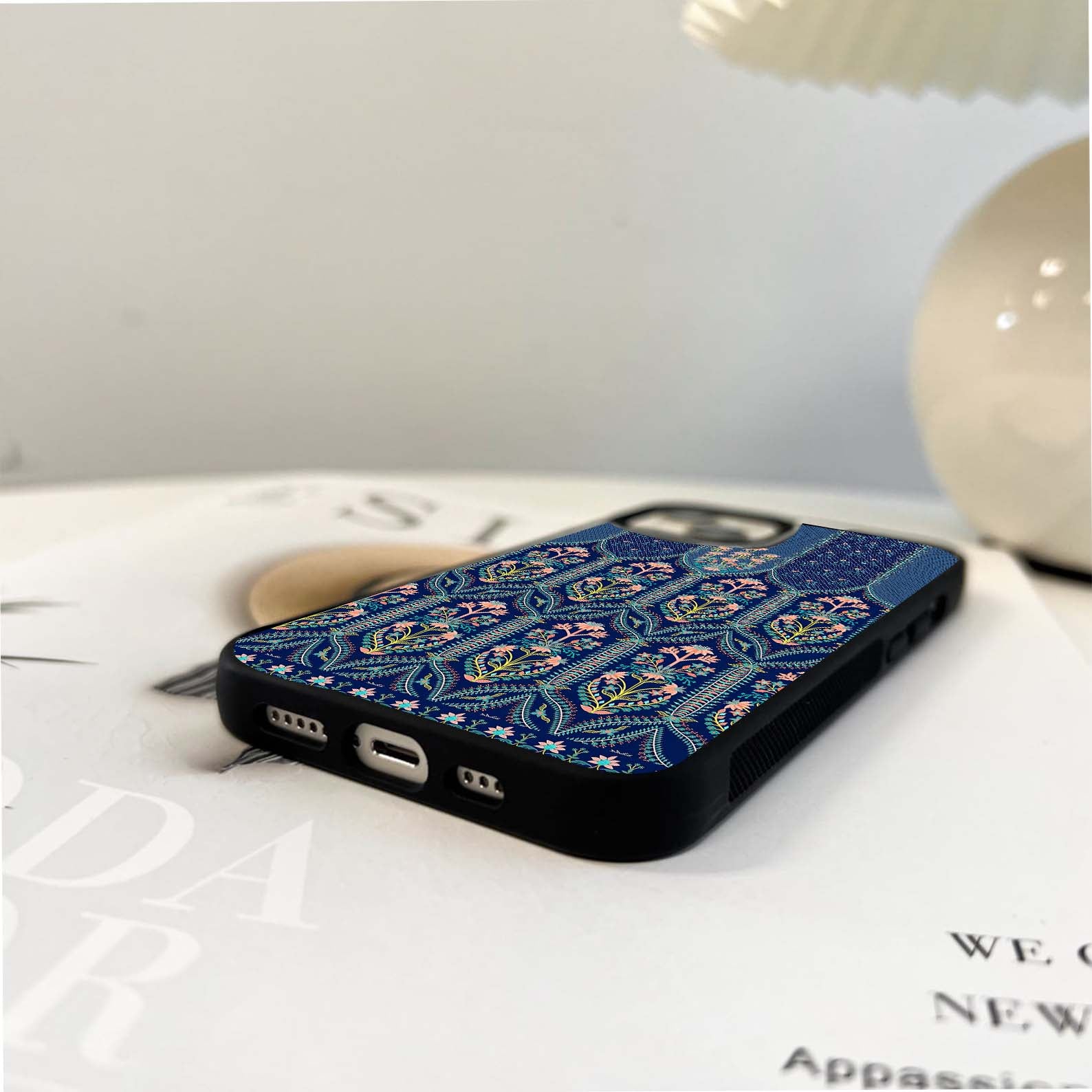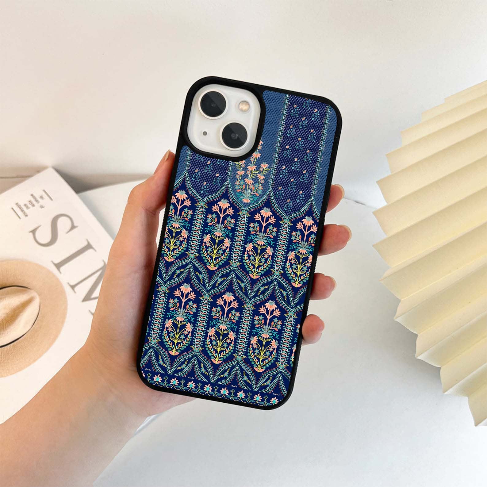 Grey & Blue Floral Slim Case Cover With Same Design Holder