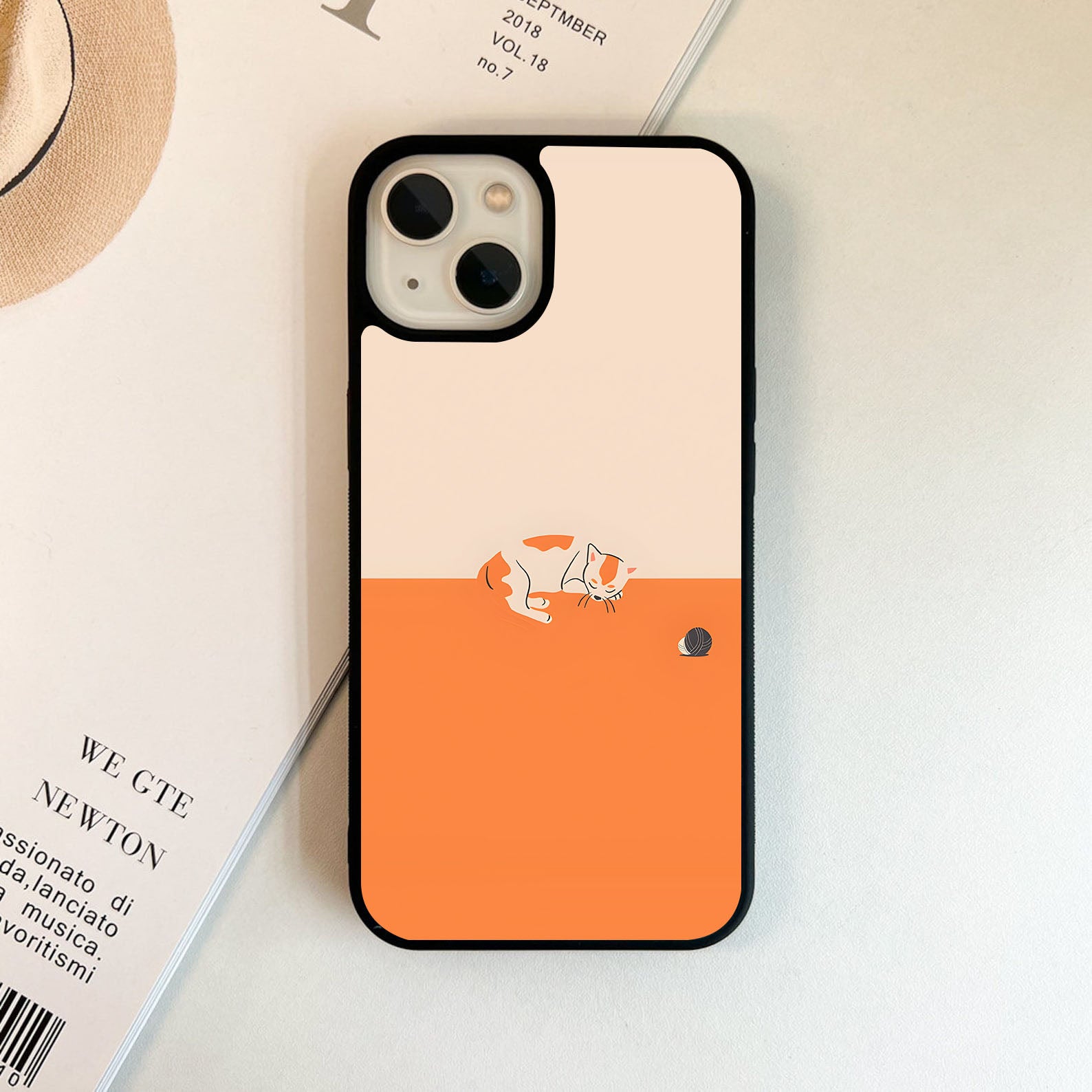 Minimal cat with yarn Glass Case